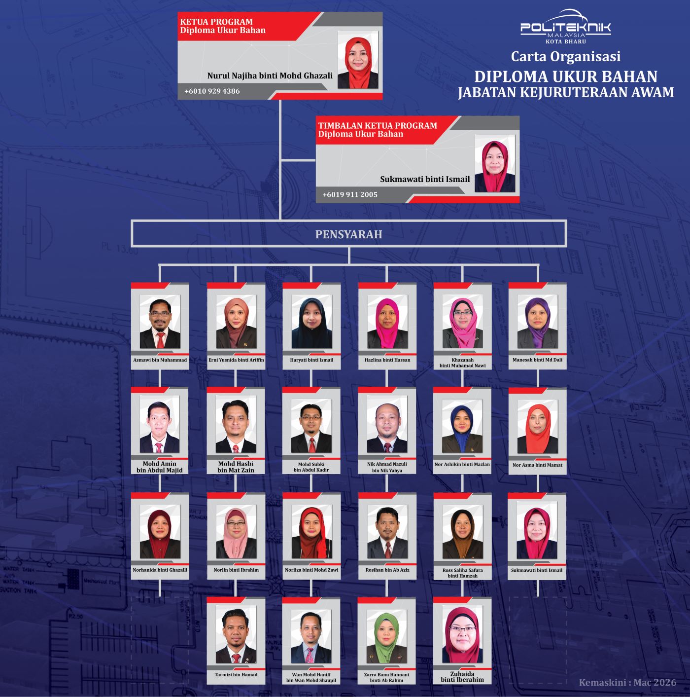 | 2. | Program Diploma Ukur Bahan | Ketua : Nurul Najiha binti Mohd Ghazali |